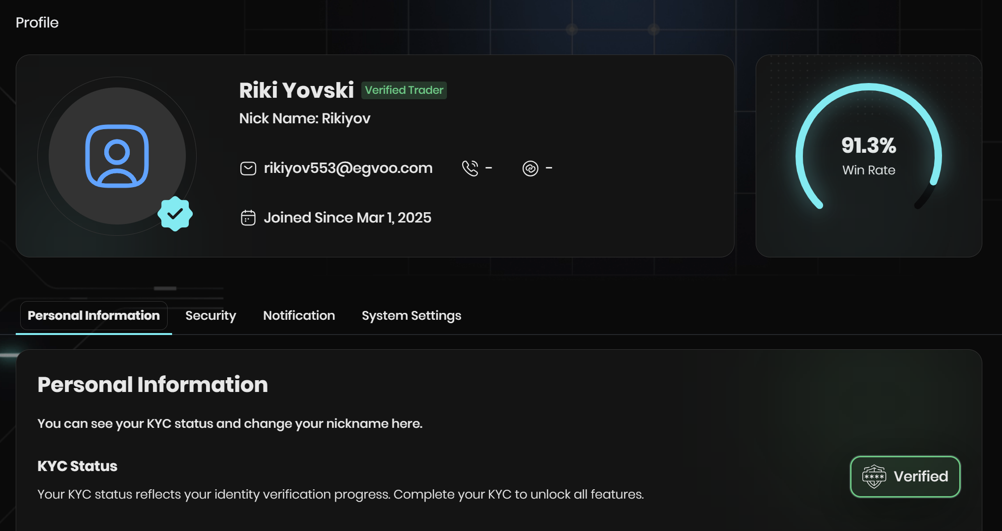 The Profile page is where you manage your Metaset account. From here, you can check your verification status, update security preferences, customize notifications, and personalize your platform experience.